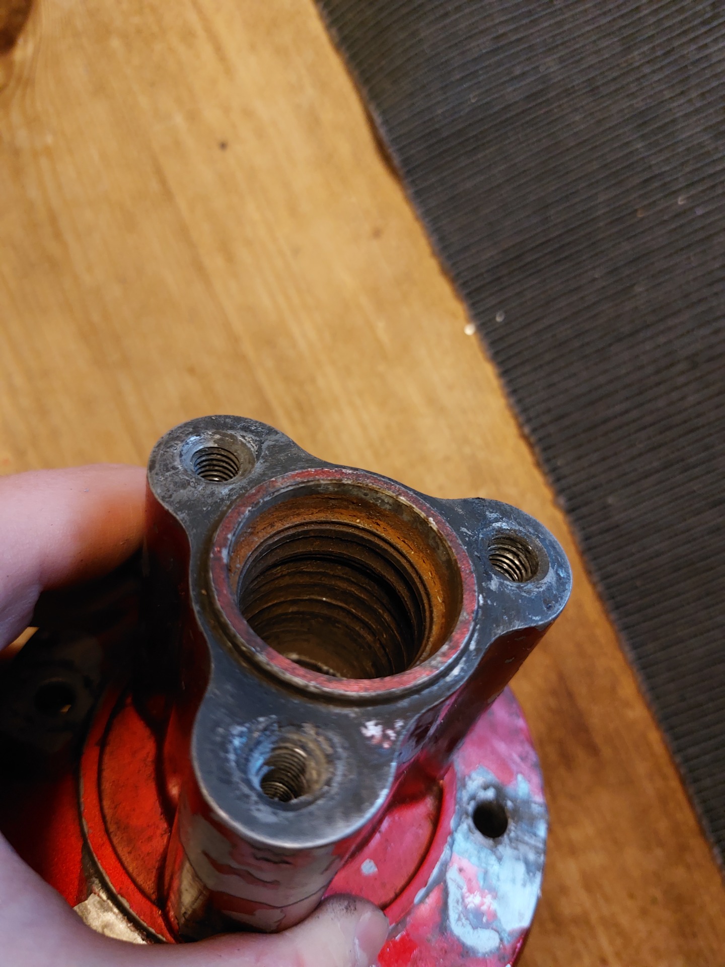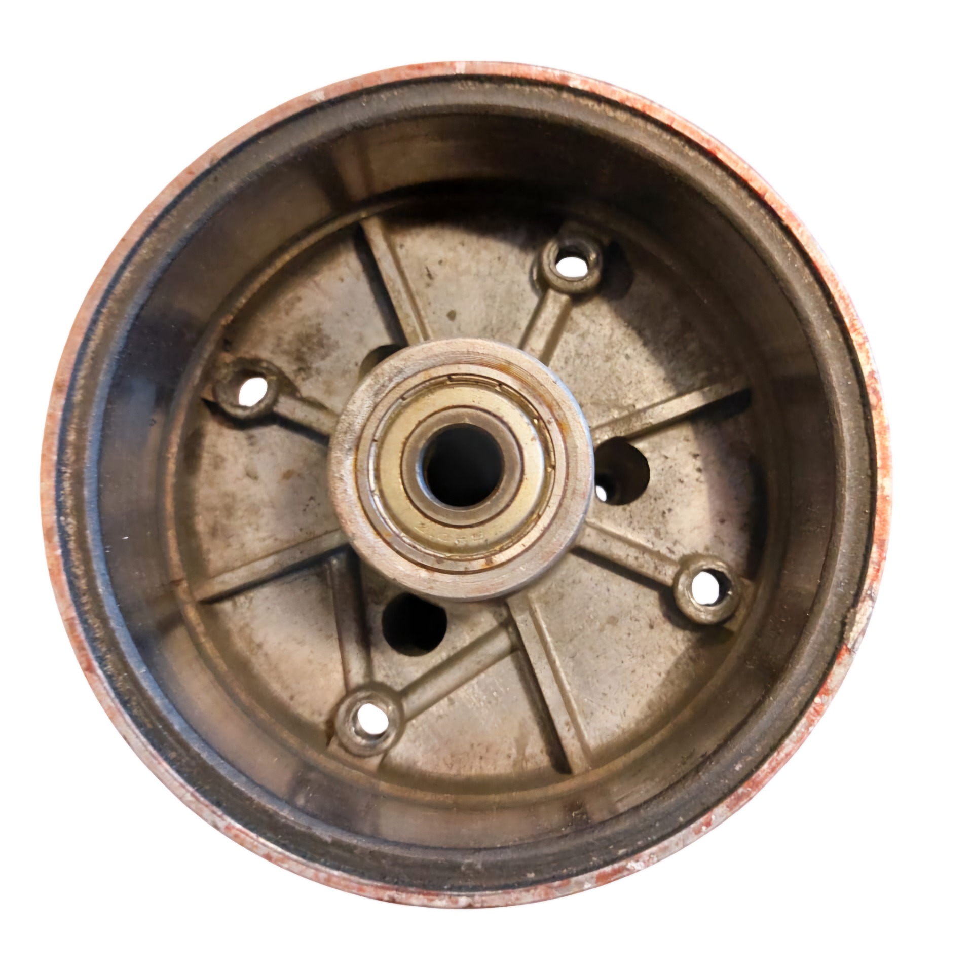 Käytetty takakeskiö. Hieman huonossa kunnossa, toinen laakeri sekä holkki ja kumi puuttuu. Osa kierteistä huonoja, läpipulteilla kuitenkin aivan hyvä keskiö vielä! Maalipinta aika kulunut myös. Täydellinen vaihtoehto budjettiprojekteihin itse maalattavaksi ja pienellä tekemisellä hyvä takakeskiö.